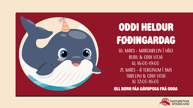 Oddi bjóðar í føðingardag í Marghøllini í Vági tann 18. mars og á Torginum í SMS tann 21. mars.